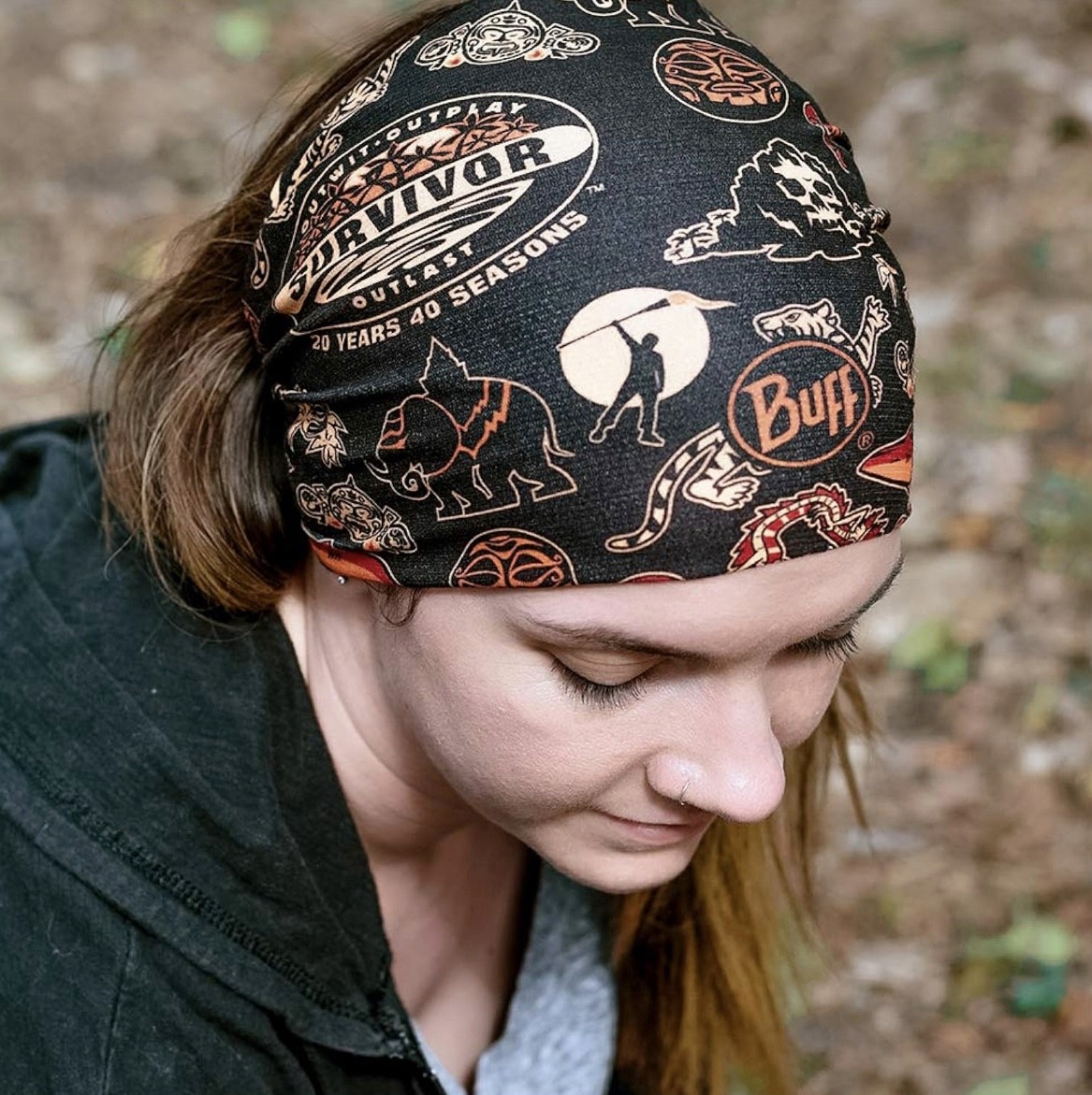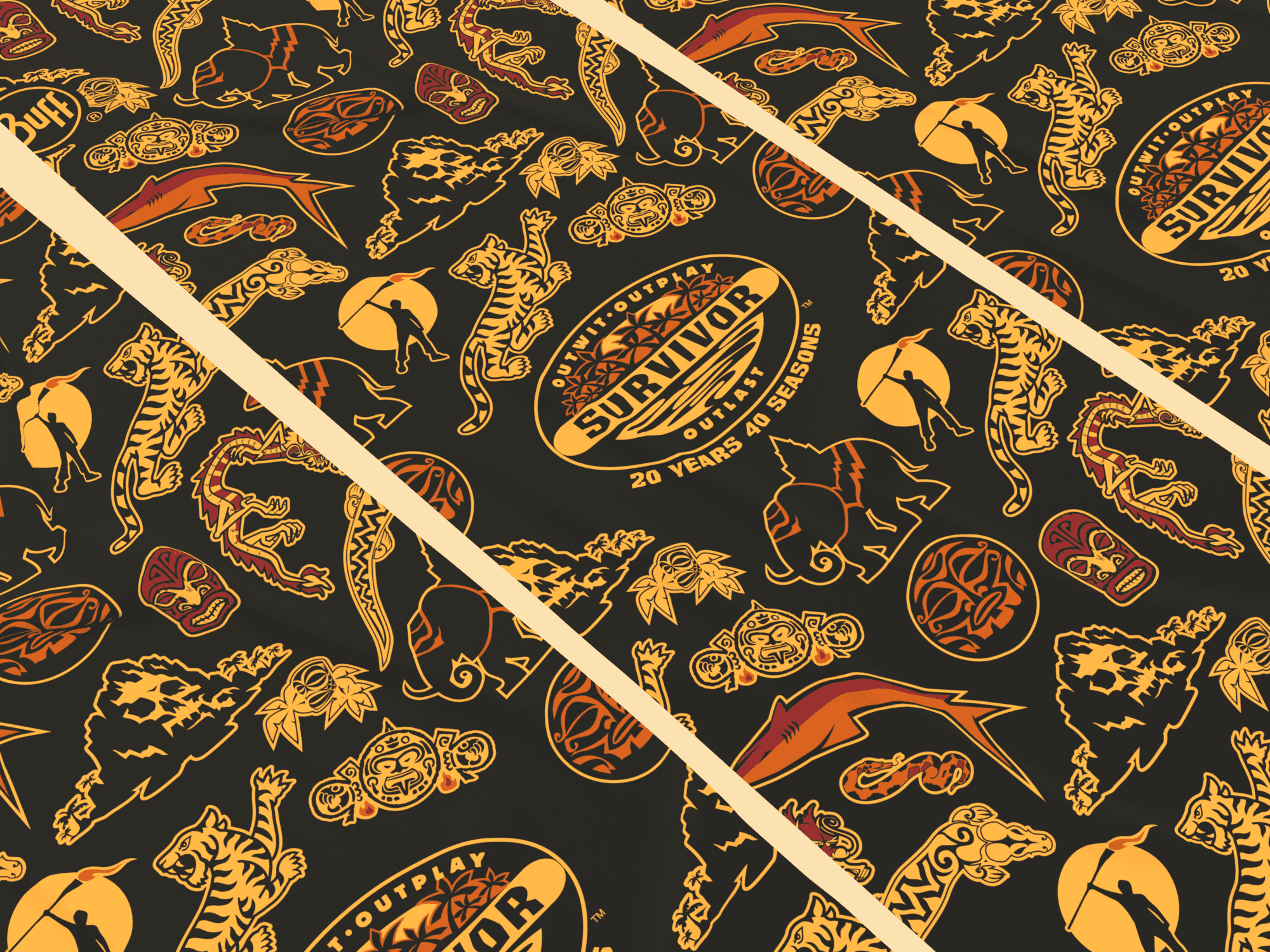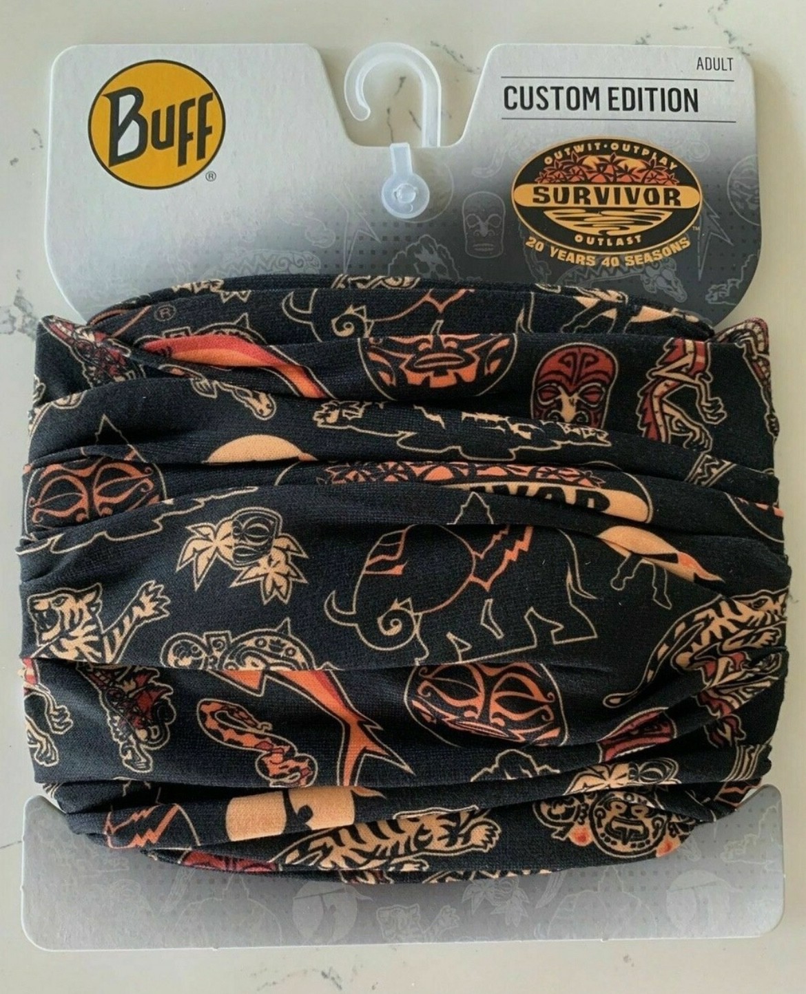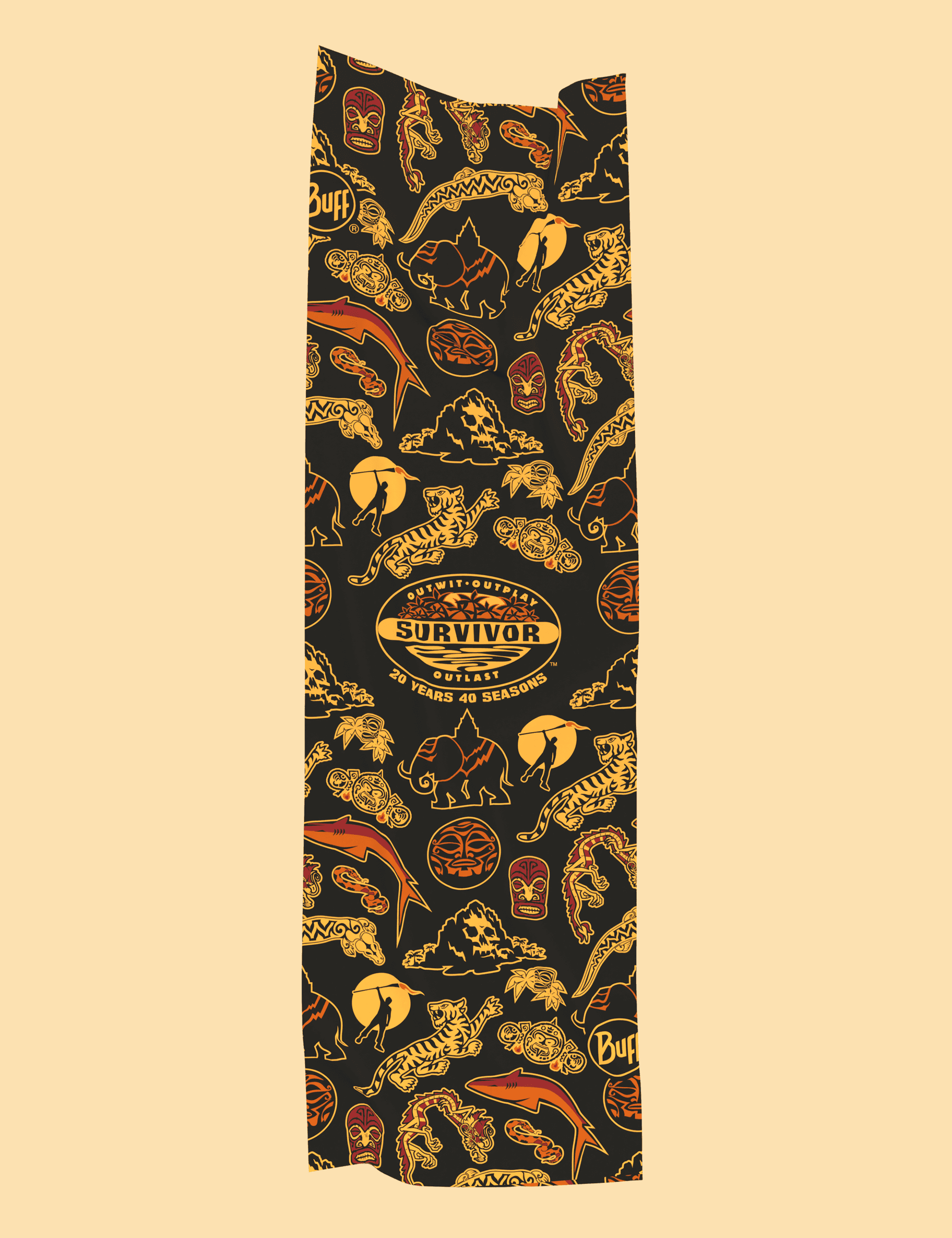 A BUFF is a multifunctional headband with 12 uses from bandana to balaclava. Using elements from previous Survivor artwork, I created the BUFF below for the 20 year 40 season anniversary of the show.
